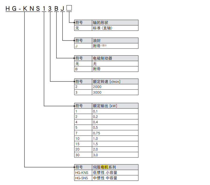 | 旋轉(zhuǎn)型伺服電機型號HG-KNS | 13J | 23J | 43J | 73J | |