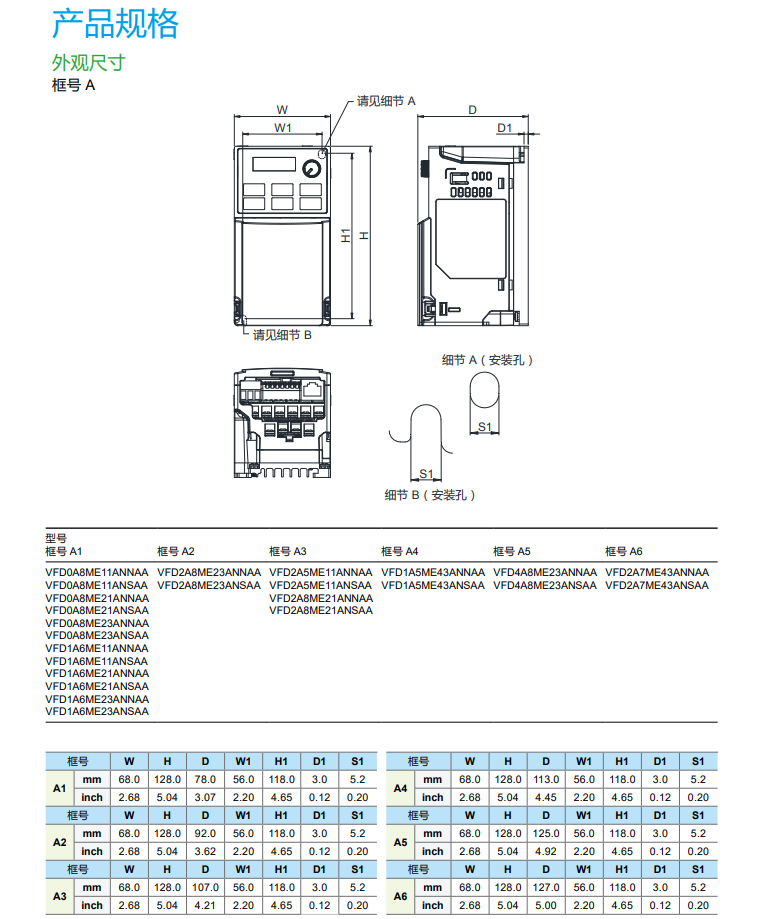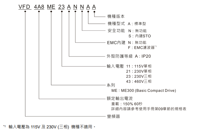 | VFD0A8ME21ANNAA | 1/8 | 0.1 | A | 0.9 | ||