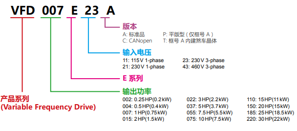 本系列采用彈性模塊的設計,內置PLC功能,可編寫簡易程序儲存與執行;并可外加特殊功能擴展卡及通訊卡,是小馬力型的代表,滿足多元化的需求。
