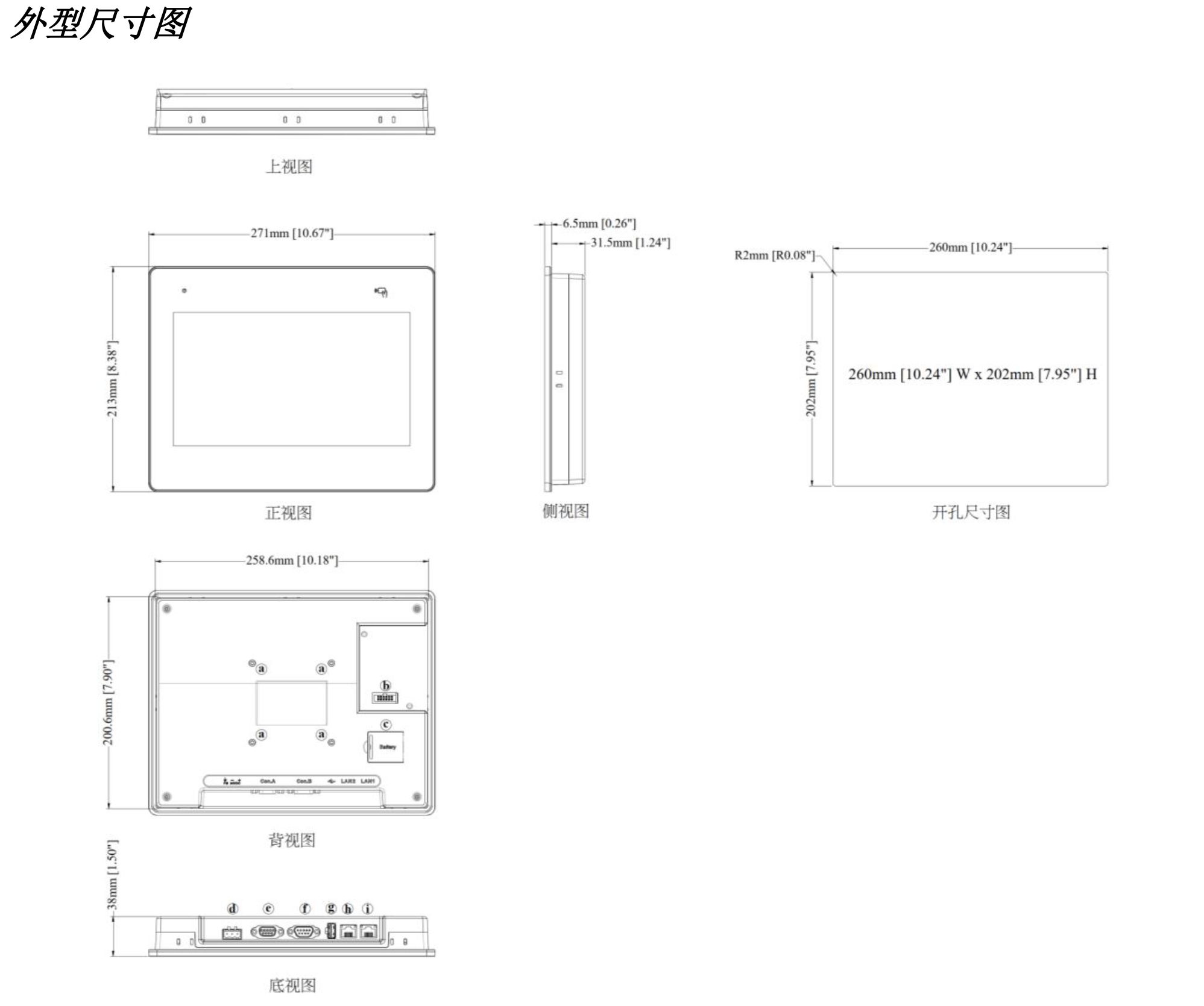 | 安裝方式 | 面板安裝, VESA 壁掛架 75 x 75 mm | ||||||||||||||||||