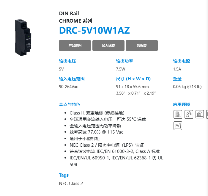 輸入電壓范圍 90-264 VAC 90-264 VAC (直流輸入