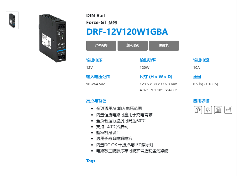 | 輸出 | DRF-12V120W1GBA | DRF-12V240W1GBA | DRF-24V120W1GBA | DRF-24V240W1GBA | DRF-24V480W1GBA | DRF-48V120W1GBA | DRF-48V240W1GBA | DRF-48V480W1GBA | |