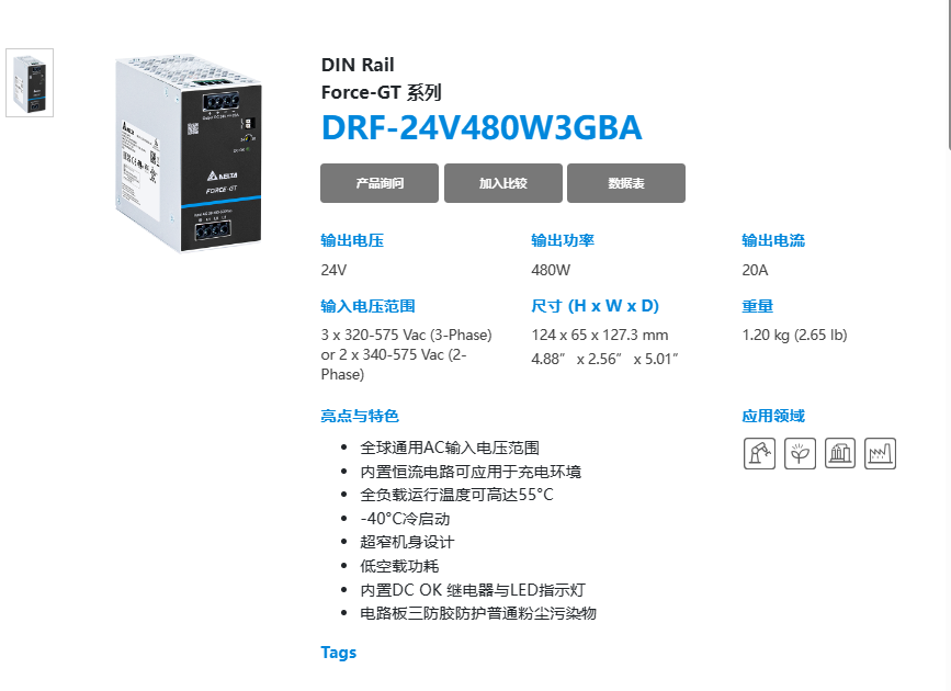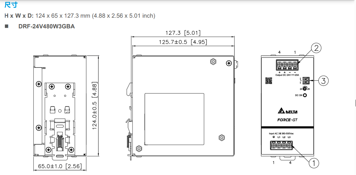 | 輸出 | DRF-24V120W3GBA | DRF-24V240W3GBA | DRF-24V480W3GBA | DRF-24V960W3GBA | |