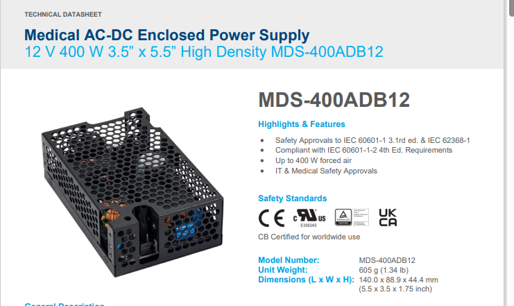 Safety Approvals to IEC 60601-1 3.1rd ed. & IEC 62368-1