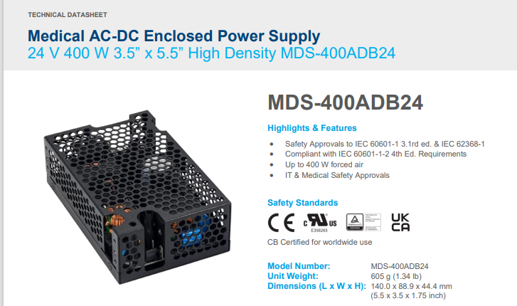 Safety Approvals to IEC 60601-1 3.1rd ed. & IEC 62368-1