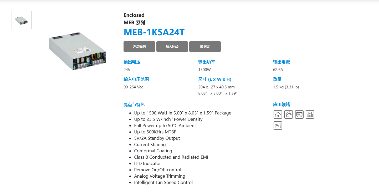 | 滿載效率 | 115VAc(60Hz) | 90.0%typ. | 90.9%typ. | 91.5%typ. |