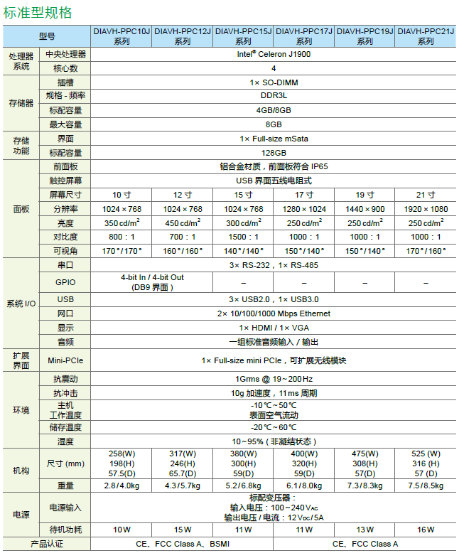 高性能、高可靠、無風扇、帶觸摸的工業平板計算機產品,PPC 機殼采用鋁合金鑄造,主要由前面板和后面板散熱片構成。 采用密閉無風扇、超薄設計。前面板防水防塵等級 IP65 可適用于橡膠機械、太陽能光伏、車載控制等工業自動化控制行業領域。