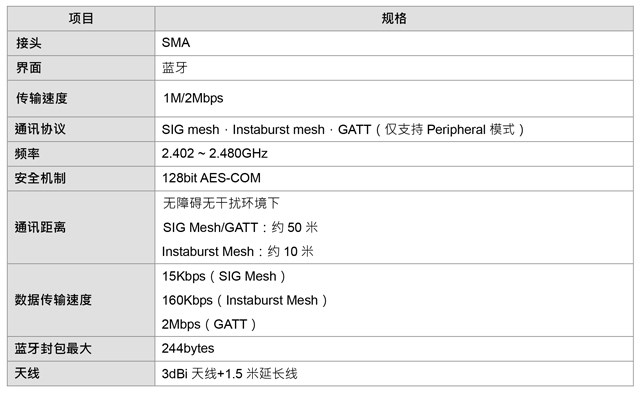 -IG Mesh: 標準藍牙Mesh協議,15Kbps傳輸速率,有效距離約50m