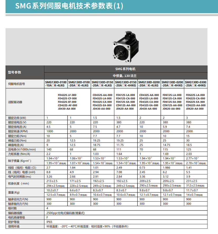 | SMG130D-0300-20**K-4HKG | 2000 | 15 | 8.8 | 231±1.5 | 294±1.5 | |||