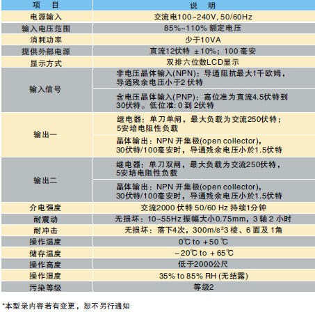 「計時/計數/轉速器」(Timer/ Counter/ Tachometer)可接收外部輸入的訊號,并計算事件次數、頻率時間或驅動速度;可應用在批次計數,總數計數、長度測量、位置控制、精密計時、轉速、線速控制等領域。 臺達CT計時計數轉速器擁有快速的輸出響應、精準的參數設定,以及簡易調校功能等特性;全系列均符合及CE、UL等國際安規認證。