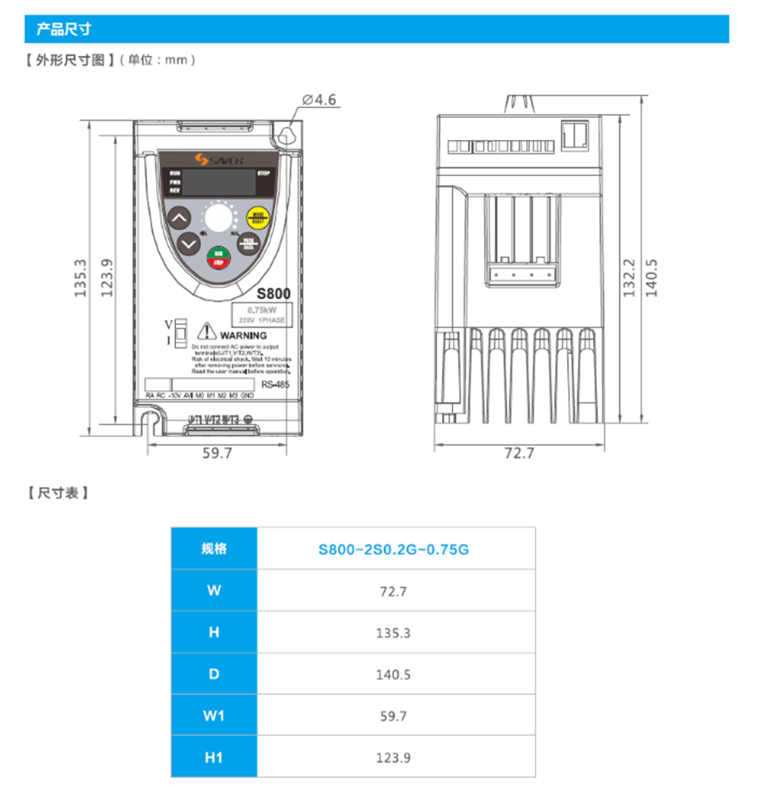 | 適用馬達功率(kW) | 0.2 | 0.4 | 0.75 | ||