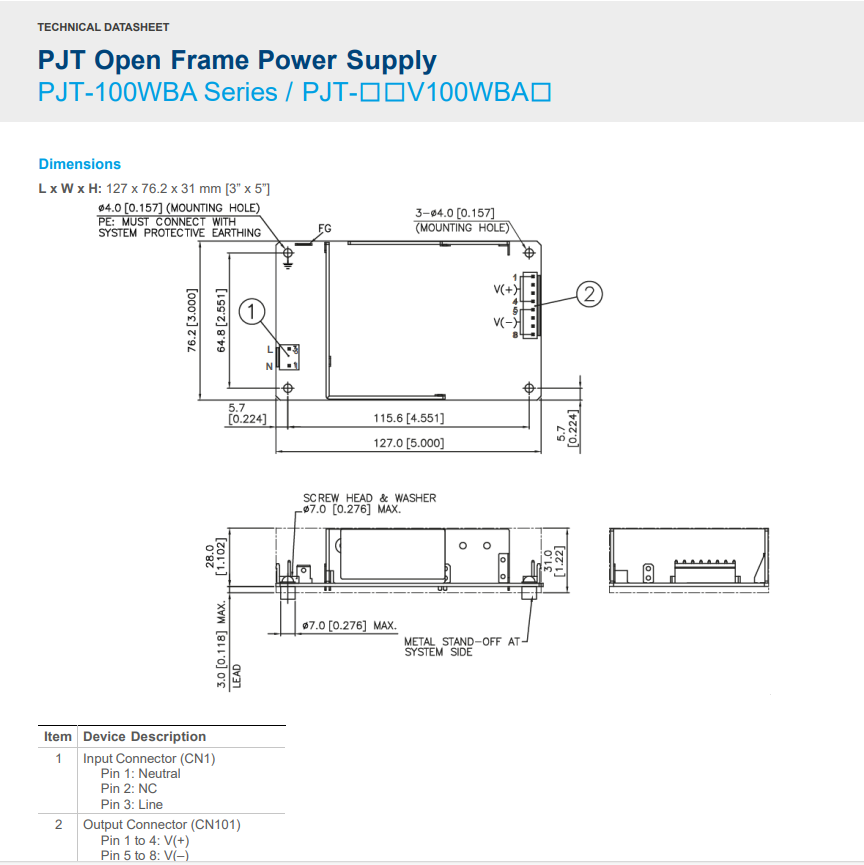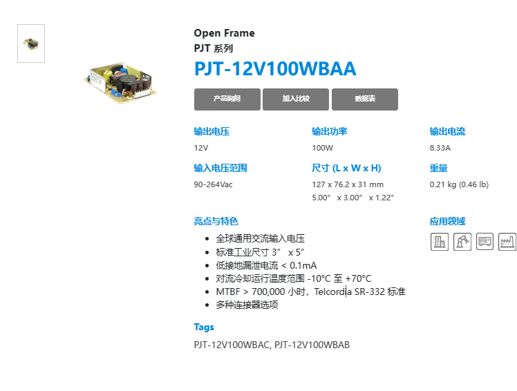 | 輸出 | PJT-12V40WBA口 | PJT-12V65WBA口 | PJT-12V100WBA口 | PJT-12V100WBB口 | |
