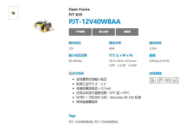 | 輸出 | PJT-12V40WBA口 | PJT-12V65WBA口 | PJT-12V100WBA口 | PJT-12V100WBB口 | |