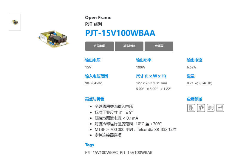 | 輸出 | PJT-15V40WBA口 | PJT-15V65WBA口 | PJT-15V100WBA口 | PJT-15V100WBB口 | |