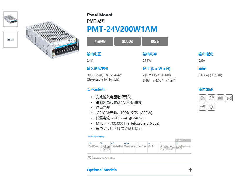 | 輸入電壓范圍 | 90-264 VAC | 90-132 VAC, 180-264 VAC (選擇開關) | 90-264 VAC | 90-132 VAC, 180-264 VAC (選擇開關) | |||||