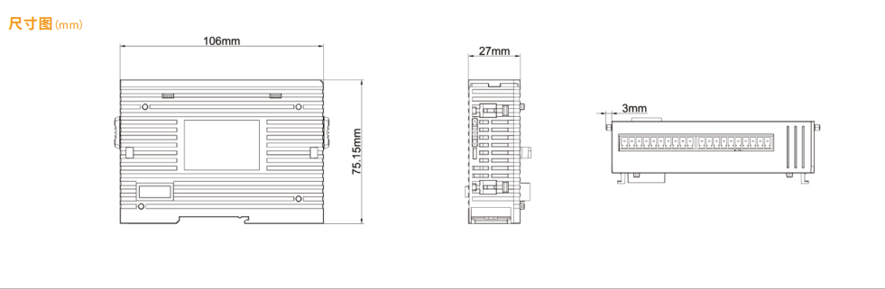 | 供電電壓 | DI | DO | AI | AO | 通訊口 | 外形尺寸 (單位mm) (長寬高 |
