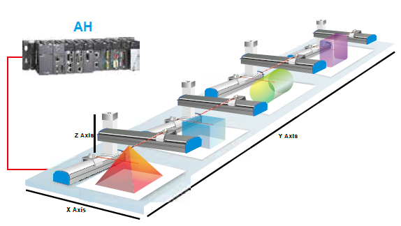 - AH500的運動控制功能,可實現(xiàn)任意三軸直線插補、任意兩軸圓弧插補、及任意三軸螺旋插補與連續(xù)插補功能,透過臺達DMCNET高速通訊網(wǎng)絡(luò)架構(gòu),更可達到1ms的指令周期內(nèi)12軸同動或4組3軸同動插補功能。無論是復(fù)雜的過程控制或是精 密的運動控制需求,都能透過AH500來實現(xiàn),有效應(yīng)用于各種產(chǎn)業(yè)機臺,如建材機,經(jīng)編機,食品包裝機等等。