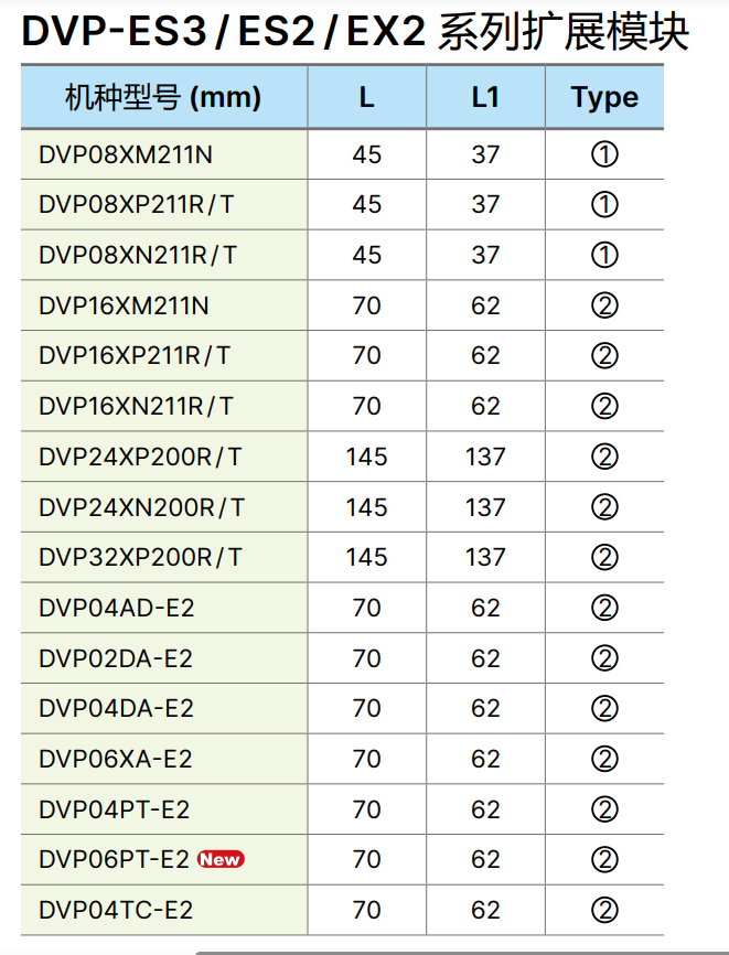 | DVP-ES3 / ES2 / EX2 系列數字 / 模擬 / 特殊模塊 (直流 24 V 供應) | ||||||||