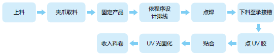 繞線、焊接、進載帶、點膠照 UV光固化、成品封裝于載帶內,集合多功能于一機