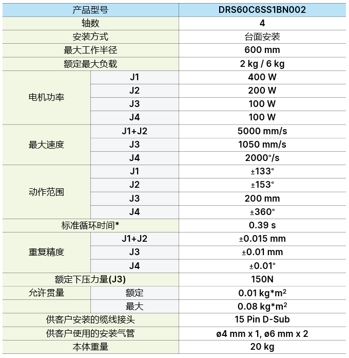 * 負(fù)載 1 kg 時(shí),上下移動(dòng) 25 mm,水平移動(dòng) 300 mm,往返所需的時(shí)間。測(cè)試環(huán)境溫度 25 oC, 環(huán)境相對(duì)濕度 45 ~ 65百分之 RH